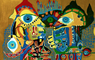 naaldwerk en schilderijen en verteller. Op